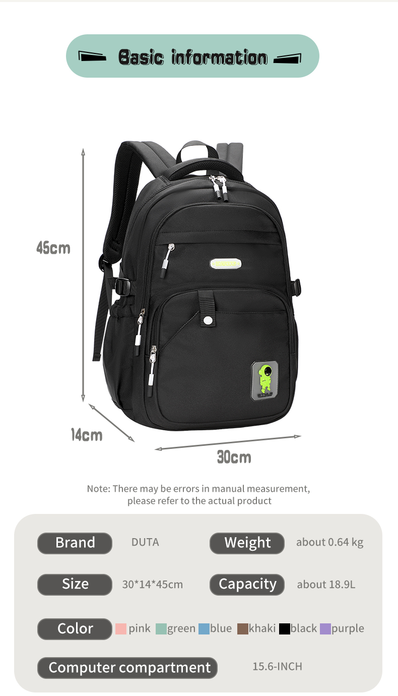 DT0810 nailon de aproximadamente 18,9 L y 30 x 14 x 45 cm